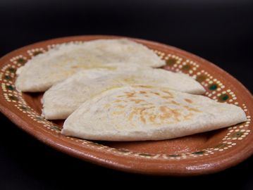 Made with a thick, soft flour tortilla filled with refried beans, salty crumbled cheese, and crema, a rich tangy Honduran style sour cream .
