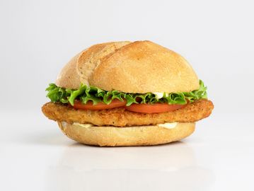 Breaded chicken cutlet, lettuce, tomato, mayo, served on a roll