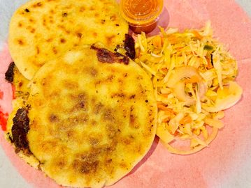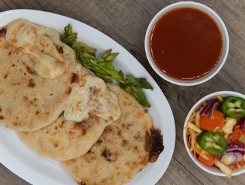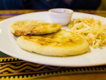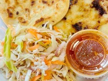 Hot, handmade pupusas - fresh off the grill daily. Typically comes with tangy pickled cabbage slaw and mild tomato sauce